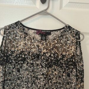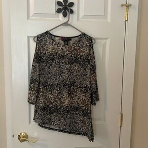 Peck & Peck Cold Shoulder Shimmer and Front of Closet Peek-a-Boo Neck Tops Med