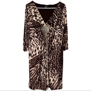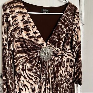 Peck & Peck Collection Animal Print Midi Dress Ruched V Neck Stretchy Comfy Medallion 14