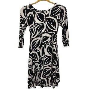 Peck & Peck Collection Black And White Long Sleeve Vee Neck Dress Size Small