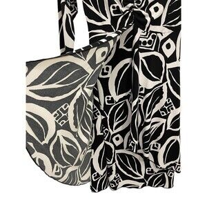 Beautiful and very comfortable dress with an interesting black and white leaf pattern. Has a couple of wings in the front overtop of the bottom part that give the dress nice movement and flow. Great for any occasion