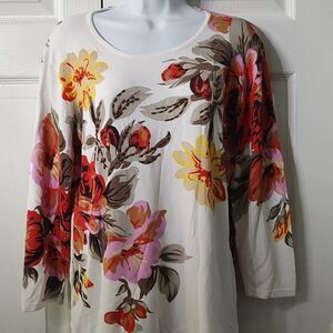 Peck & Peck Collection white floral print beaded lighter weight sweater Sz XL