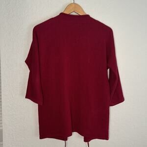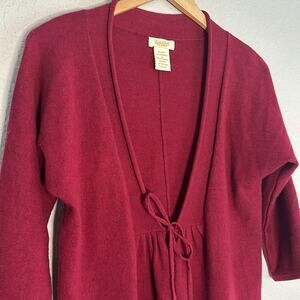 Peck & Peck Cranberry Red Cashmere Wool Sweater Cardigan 3/4 Sleeve Waist Tie