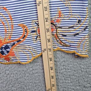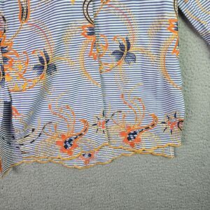 Peck & Peck Embroidered Striped Floral Shirt Small Cotton Boho Scallop Hem Blue