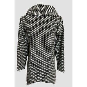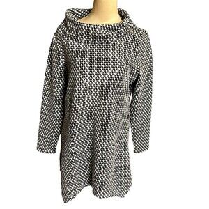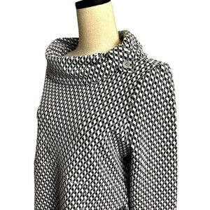 Peck & Peck Houndstooth Cowl Neck Black White Silver Glitter Knit Button Shift Mini Pullover Dress
