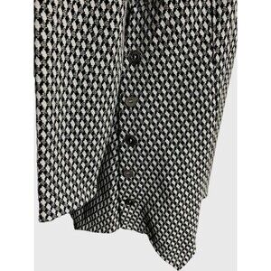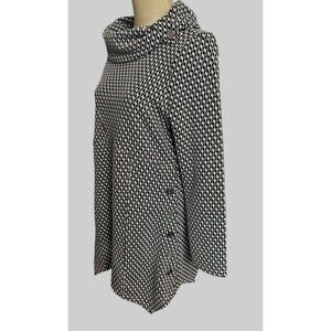Peck & Peck Houndstooth Cowl Neck Black White Silver Button Shift Mini D…