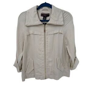 Peck & Peck Linen Blend Full Zip Roll Tab Sleeve Lightweight Jacket