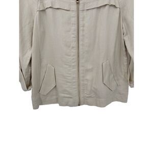 Peck & Peck Linen Blend Full Zip Roll Tab Sleeve Lightweight Jacket Khaki Medium