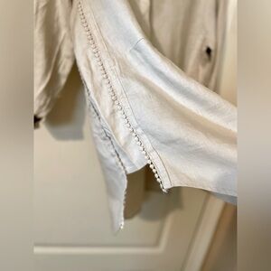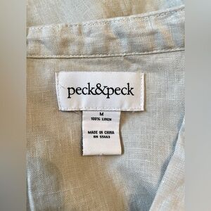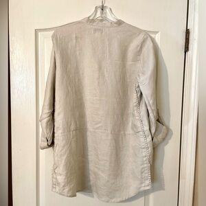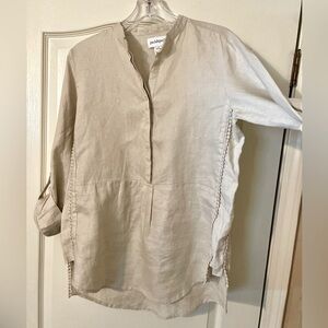 Peck & Peck Linen Tunic Top Roll Tab Sleeves Tan Size M Resort Coastal Boho