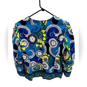 Peck & Peck Multi Colored Paisley Print Blue Jacket Zip Up Size 8