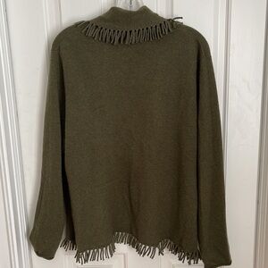 Peck & Peck Olive Green Fringe Sweater