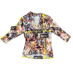 Peck & Peck Petite PS Multicolor Abstract Print 3/4 Sleeve V-Neck Top 1777