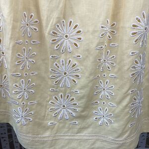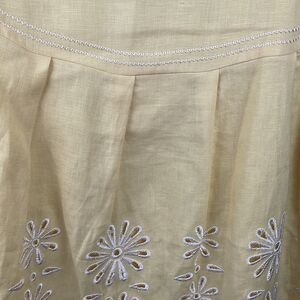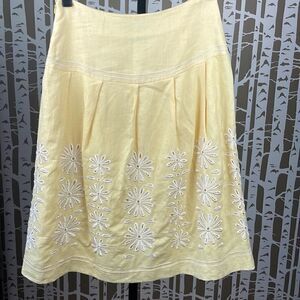 Peck & Peck Petite yellow 100% linen embroidered drop waist A-Line Midi skirt