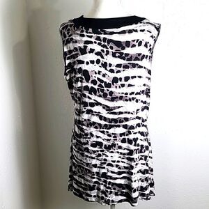 Peck & Peck Sleeveless Top, Longer on Sides, Silver Studded Neckline, Sz Large