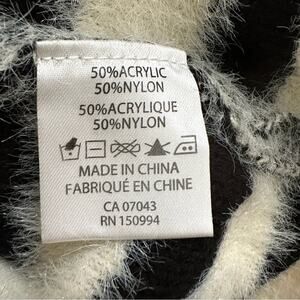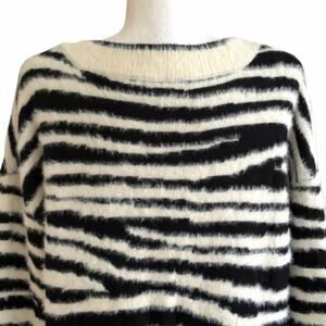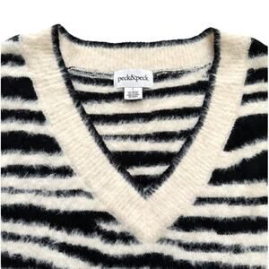 Peck & Peck Sweater Black Ivory Zebra Print V-Neck Oversized Soft Fuzzy Large