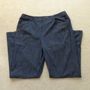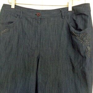 Peck Peck Weekend Embroidered Lightweight Cotton Gray Pockets Pants Women Sz 16