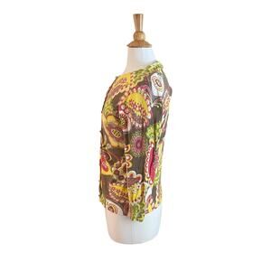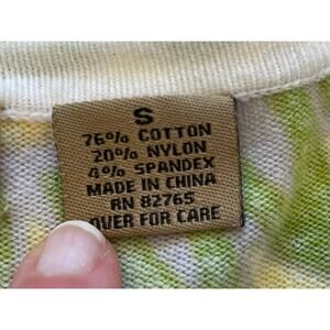 Peck & Peck Weekend Yellow Pink Floral Cotton Blend Crew Neck Cardigan, Size S