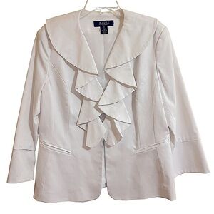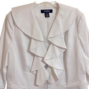 Peck & Peck White Ruffle Lapel Button Front Blazer Jacket Size 14