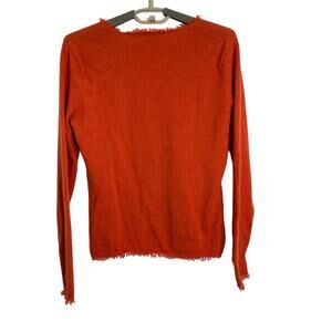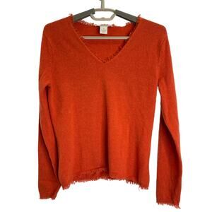Peck & Peck Womens 100% Cashmere V Neck Sweater Burnt Orange Fringe M/S