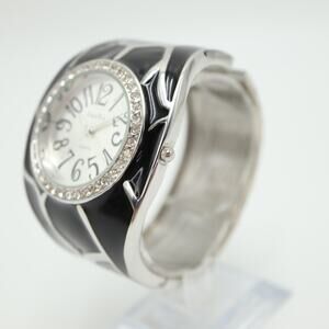 Peck & Peck Womens Cuff Watch 46mm Black Pebble Silver Tone w New Battery