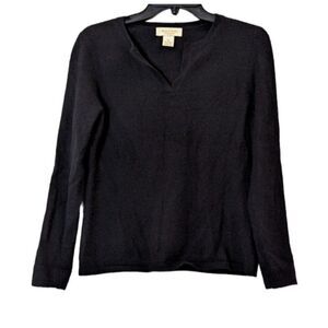Peck & Peck Womens Size Medium Black Cashmere Split Neck Pullover Sweater Soft