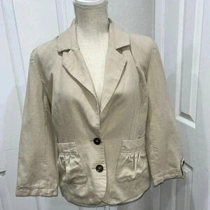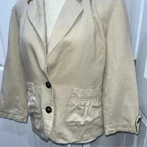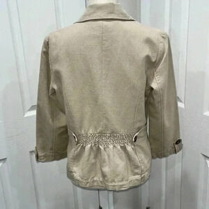Peck and Peck 2 button blazer jacket beige neutral boho extra detailing