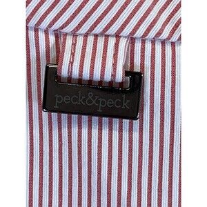 Upgrade your activewear collection with these stylish Peck and Peck walking shorts. The red and white pinstripe pattern adds a touch of sophistication to the casual Bermuda style. The shorts feature a flat front and mid-rise waist, providing a comfortable fit for stretchy women's size 10. Made from a blend of polyester, spandex, and rayon, these shorts are perfect for travel, walking, or any casual occasion. The fabric type is rayon, which adds to the stretchy comfort. The shorts come in a regular fit and are not vintage. Get ready to look and feel great in these modern and stylish shorts from Peck and Peck.