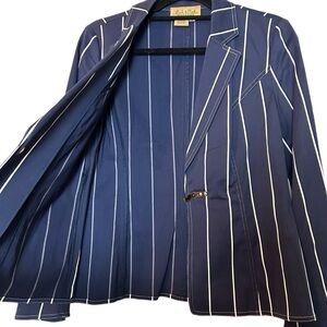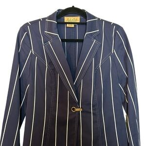 Peck and Peck Weekend Pinstripe Nantucket Striped Blazer w/ Brass Closure Sz.8