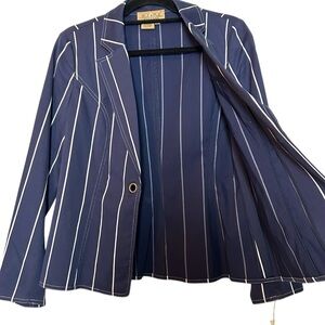 Peck & Peck blue and white pinstriped Nantucket Weekend blazer with a single brass front closure. This is NWT dead stock from Stein Mart. This classic nautical blazer is lightweight and a fun staple piece to add to your spring and summer wardrobe. This blazer retailed originally for $148 and Stein Mart had it makes at $100! I am so thrilled I found this piece in time for the warmer weather. The classic look that Diana or Kate would wear is a piece you will keep in your closet for a long time. Size 8 measurements are PTP 19” length 24” sleeve 24” SKU 00424-0013