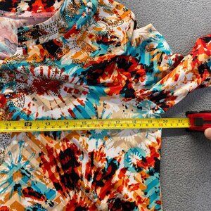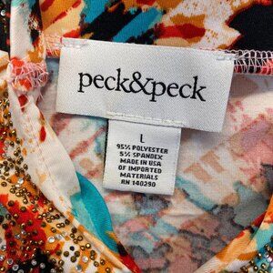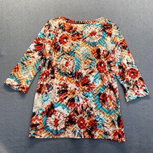 Peck&Peck Top Womens Multicolor Pattern 3/4 Sleeve Stretch Blouse Large,Preppy