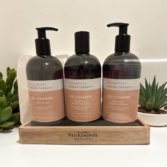 Pecksniff’s England Re-Charge Gift Set Hand Wash, Shower Gel & Lotion 16.9 oz ea