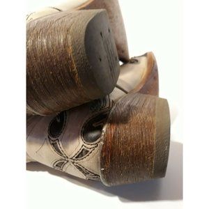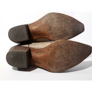 Pecos Bill Women's Leather Beige Embroidered Snip Toe Western Cowboy Boot Size 7. Embroidery is dark brown in a swirled pattern. Made in Mexico. Boots have been gently used; no heel wear; no stains, cuts or damaged areas. Boot box not included.