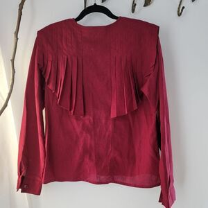 70s 80s vintage peddlers blouse. pleated bib front and back . buttons completely in front. no size , best fits loose medium. Preloved condition. All sections of interest as well any known flaws have been documented in the photos and noted as thoroughly as possible. if there are no known flaws, none will be noted. Please feel free to ask any questions before purchase 🙂.