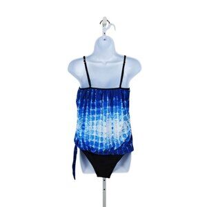 Peddney Ombre Blouson Tankini Two Piece Swimsuit In Blue Size XXL