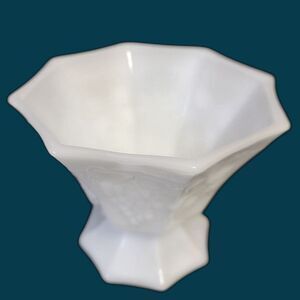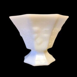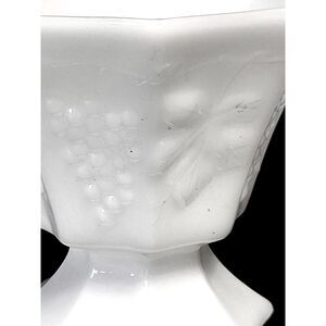 Pedestal Milk Glass Candy Bowl Harvest Grape Pattern Vintage Anchor Hocking 5"