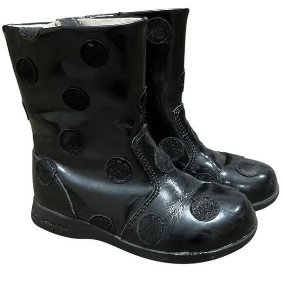 Pediped Girl’s Leather Upper Polka Dot Boots Eur 26 US Size 9-9.5