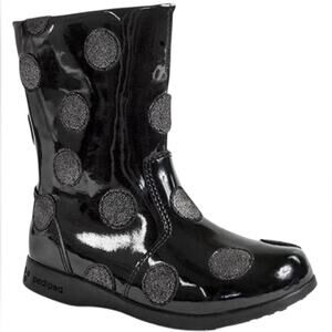 Stylish kids boots featuring a playful polka dot design. Perfect for adding a fun touch to any outfit.