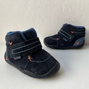 Pediped Kids Grip 'N' Go Ronnie Suede Boots Infant Size 5 Navy Blue Faux Fur