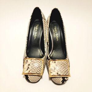 Pedro Anton Made in Spain Faux Snake Embossed Buckle Pumps Block Heel Shoes 36