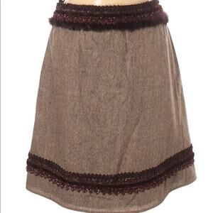 Pedro Del Hierro brown wool skirt embroidered size US 8 EU 40 secretarycore