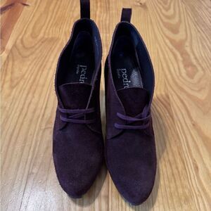 Pedro Garcia 38 (US 7.5) Maroon Suede Leather Lace Up Heel Ankle Boots Spain