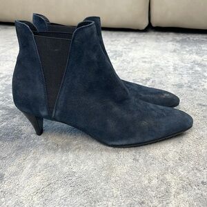 Pedro Garcia Agora Navy Blue Suede Pointed Toe Ankle Boots Kitten Heel Gore Side