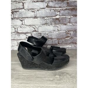 Selling Pedro Garcia Black Leather Platform Suede Wedge Ankle Strap Open Toe Sandals Women’s sz 37.5EU/7M US