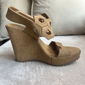 Pedro Garcia Brown Suede Platform Wedge Heel Sandal Women EU 36 US 6 Boho Casual