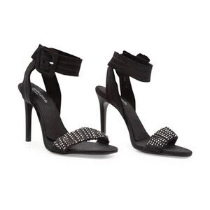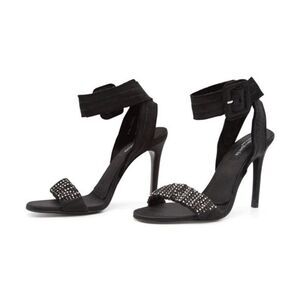 Tags: event formal wedding courthouse elopement engagement rehearsal reception bridal party bachelorette minimalist Black raw edge silk satin stiletto heel silk satin ankle strap with Crystal embellished