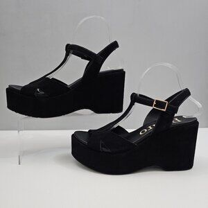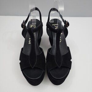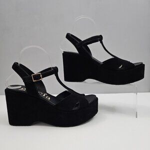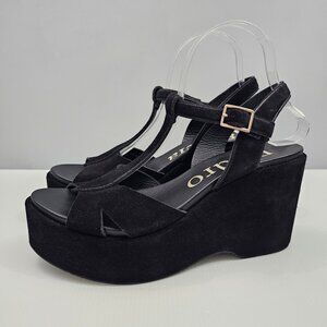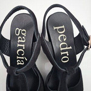 Pedro Garcia Domiel Platform Wedge Sandal Womens EU 40 Black Suede Chunky NEW