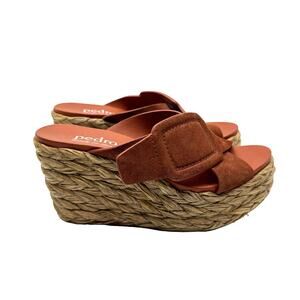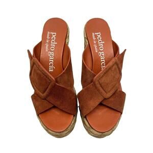 Pedro Garcia Donata Terracotta Suede Leather Rafia Espadrille Wedge Sandals
