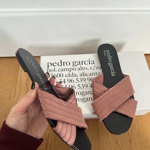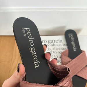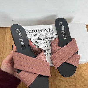 Pedro Garcia Elisa Slide Sandals Criss-cross Straps Pink Powder Satin Sz 39