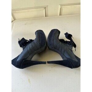 Pedro Garcia Lady Stack Rizzo Blue Nylon Suede Lace Up Italian Ankle Boots US 7