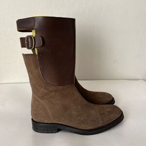 Pedro Garcia Leather Suede Pull Buckle Open Back Riding Boots Tan Brown EU38