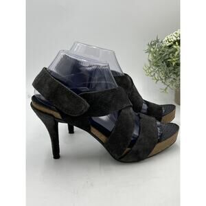 Pedro Garcia Libby Gray Suede Cork Platform Sandals Comfort Heels Sz 38.5/US 8